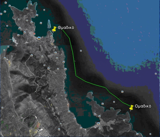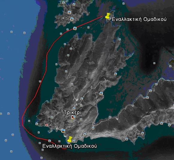 Δυτικό άκρο(«Πριόνια», Νηές Βόλου) 39°07’04.42″Β – 22°57’53.07″Α