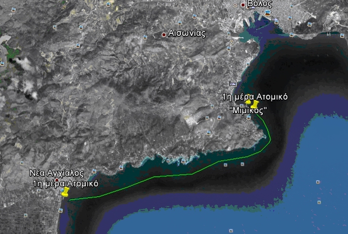 Πρώτη μέρα(«Μιμίκος», Αλυκές Βόλου) 39°18’56.12″Β – 22°55’54.39″Α